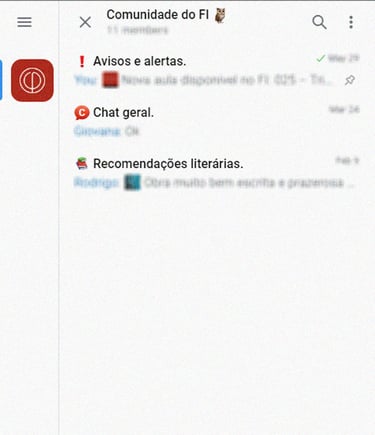 Tendo em vista que nada se aprende sozinho, aproveite nossa comunidade exclusiva no Telegram, onde você pode dialogar, trocar indicações e experiências, e ter acesso direto ao professor para conversas e esclarecimento de dúvidas.